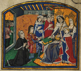 | Anthony Woodville, Earl Rivers & William Caxton presenting the first printed book in English to Edward IV |