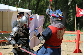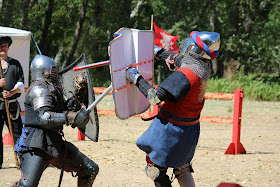 15th Century German hand pavise, based on a similar piece held by the rusthammer museum in Germany, I have altered construction a little for SCA combat the brackets on the back are aluminium for weight reduction and bolts instead of rivets for safety reasons. |