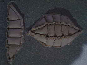 Unpin your torso mock up and lay it out flat on top of your cotton duck (doubled so you cut 2 at once, if you are making it all the same colour you can cut 4 at once if you wish and have sharp scissors) you need to add 1 CM for every 3 CM's of fabric in a horizontal direction to the torso this includes the neck.